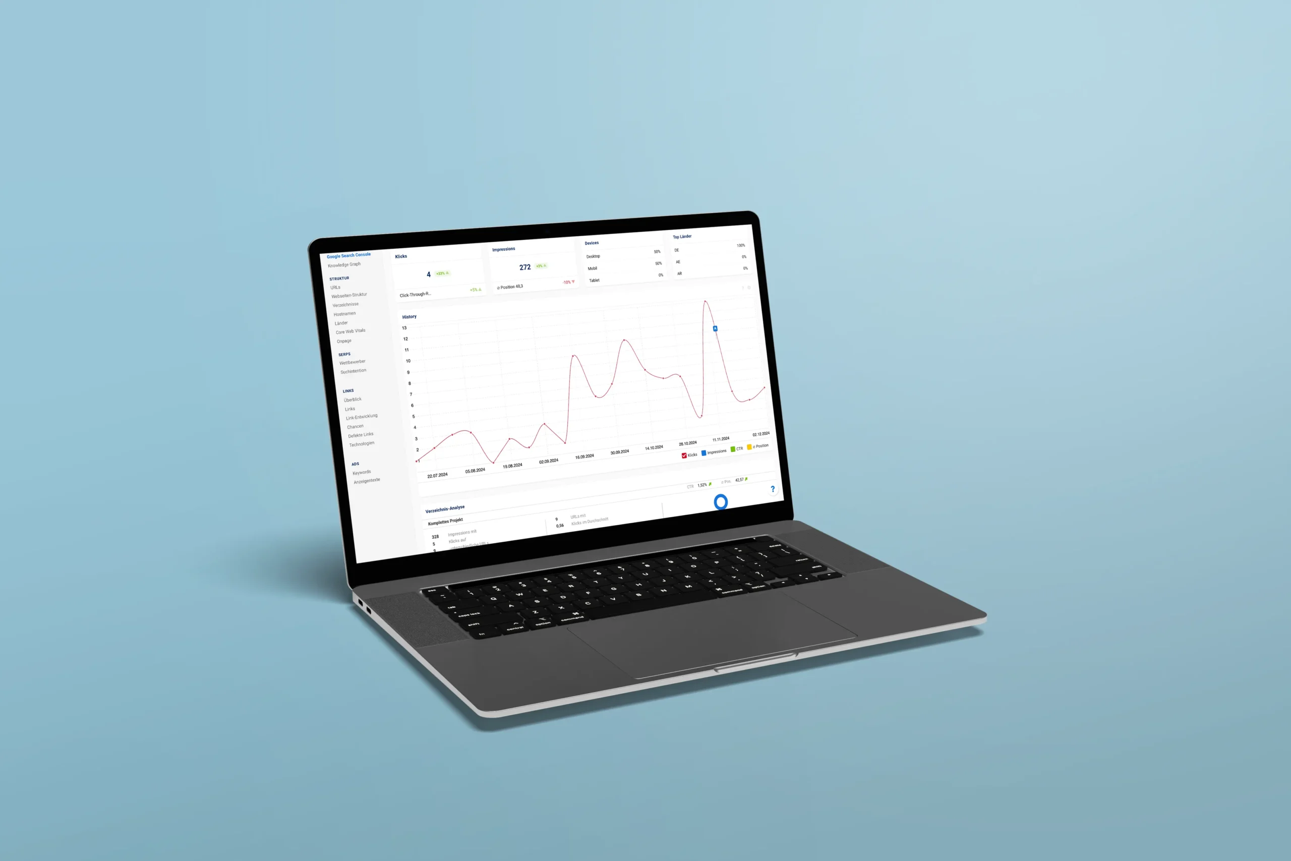 Wir liefern transparente Ergebnisse über die erzielten Fortschritte. Somit erhalten Sie einen klaren Überblick über alle SEO-Maßnahmen. Dabei legen wir besonderen Wert auf individuelle Strategien gezielt ausgerichtet auf Ihr Unternehmen. Mit diesem maßgeschneiderten Konzept gehen wir genau auf Ihre Ziele und Bedürfnisse ein. Gleichzeitig setzen wir auf langfristigen Erfolg: Unsere Maßnahmen sorgen nicht nur für schnelle Ergebnisse, sondern schaffen nachhaltigen Erfolg für ein optimales Ranking.